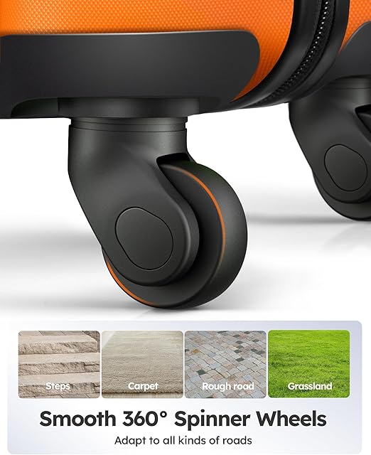 - Smooth Spinner Wheels :Checked Luggage and carry-on suitcase feature an easily adjustable pull handle with a comfortable grip and smooth mulitfunctional 360° spinner wheels, ensuring effortless movement through airports